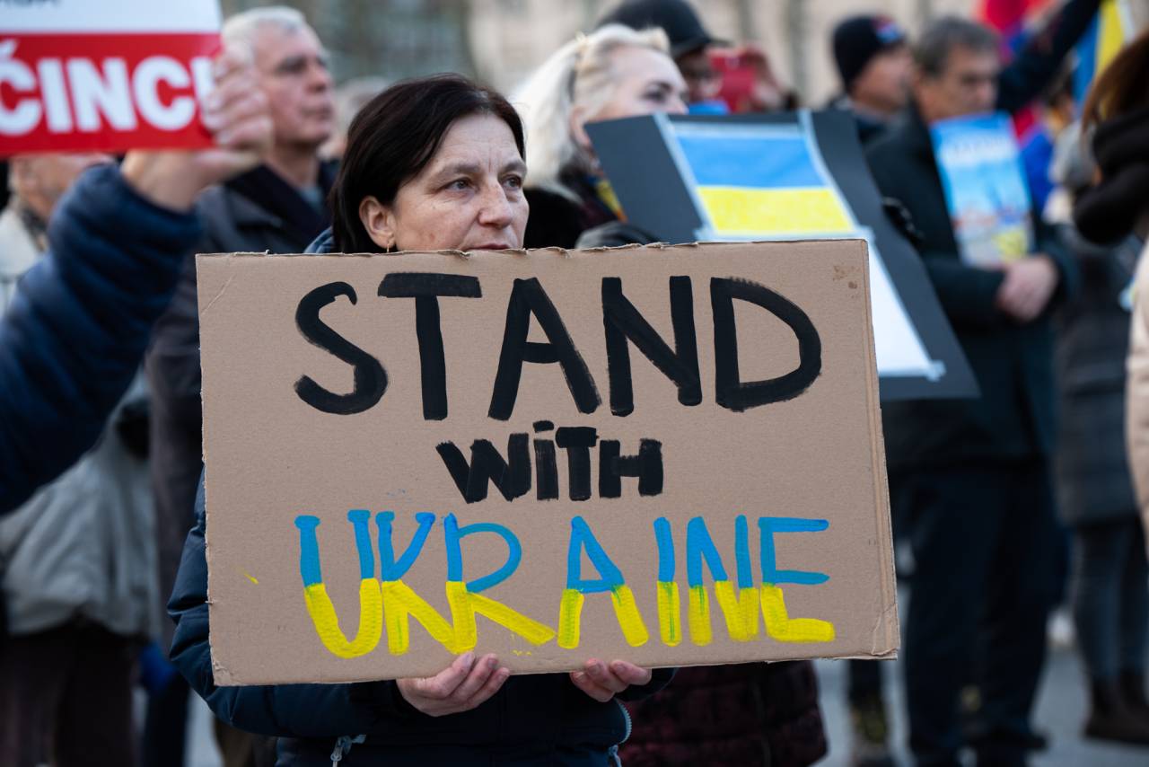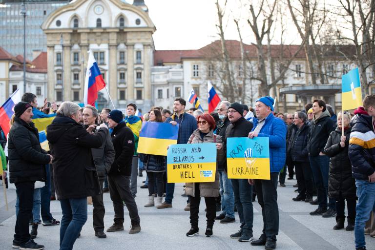 V Ljubljani je danes potekal drugi shod v podporo Ukrajini, ki je invazijo nanjo minuli četrtek sprožil ruski predsednik Vladimir Putin.