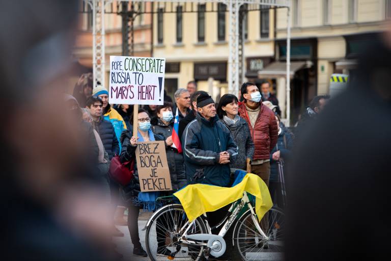 Kot smo poročali so organizatorji shoda zapisali, da obsojajo ruske napade na Ukrajino in izražajo solidarnost z vsemi, ki se te dni bojijo za svoja življenja, so izgubili bližnje in so razseljeni. Prav tako nasprotujejo političnim zlorabam vojne in stopnjevanju militarizacije tako doma kot v tujini.