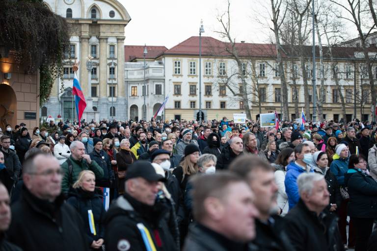 Na Trgu republike je tudi danes ob 17. uri potekal shod v oporo Ukrajini.