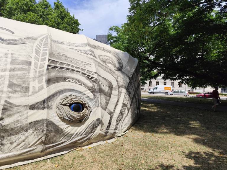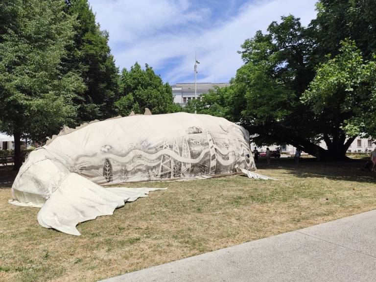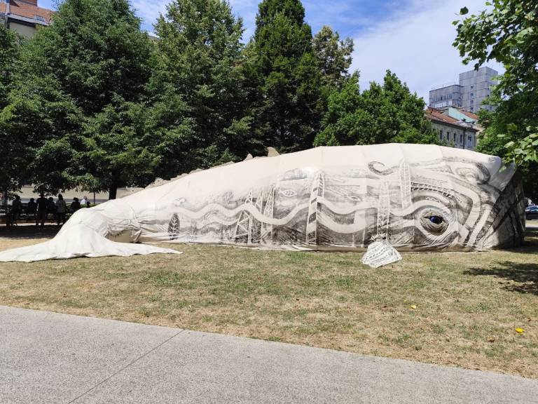 V Ljubljani je naše oko pritegnil »leteči kit«, ki se je znašel v Miklošičevem parku. Kot piše ob njem, gre za ogroženo vrsto, katere ni dovoljeno hraniti, se je dotikati ali vanjo vstopati.