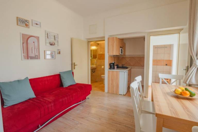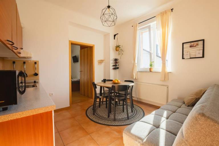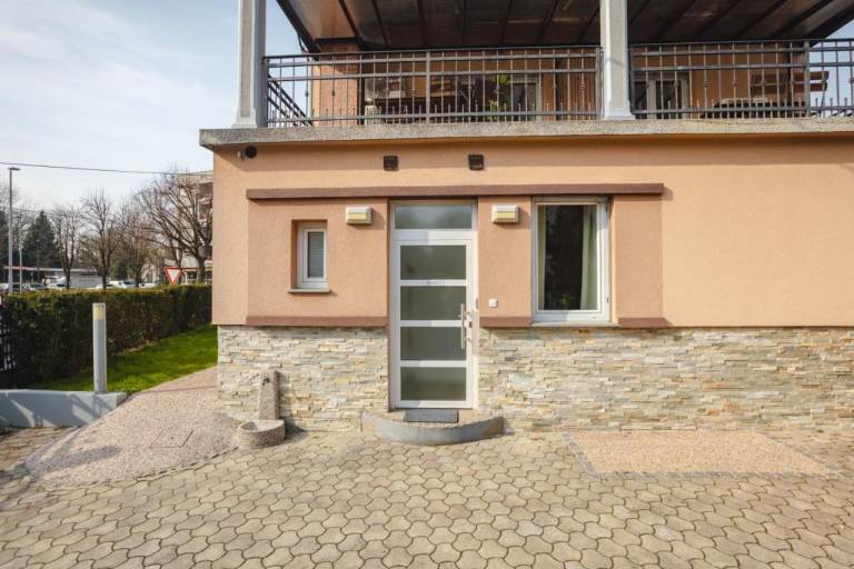 Objekt obsega pet apartmajev, dva studia, dva poslovna prostora, utility in garažo. Skupno to predstavlja 244 kvadratnih metrov.