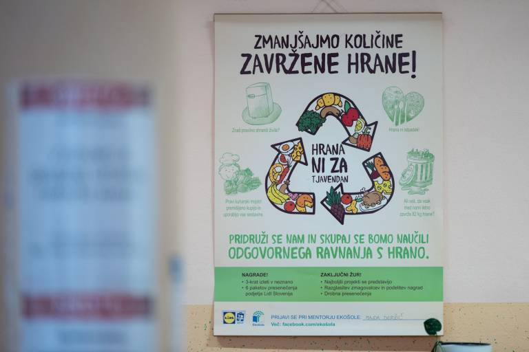 Tudi ko se sprehodimo po jedilnici šolskega centra, opazimo, da je ta polepljena s plakati, ki ozaveščajo o tem, kako pomembno je, da hrane ne mečemo stran.