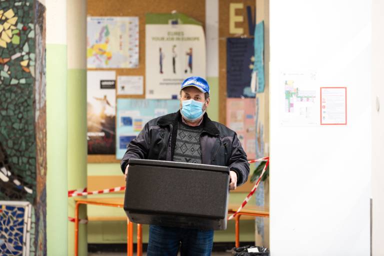 Ti so v šolski center poslali prostovoljca, ki kosila pri kuhinjskih vratih prevzame in jih pelje do tistih, ki si sami topel obrok sicer težko privoščijo.