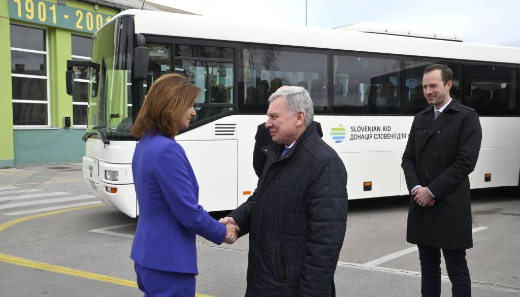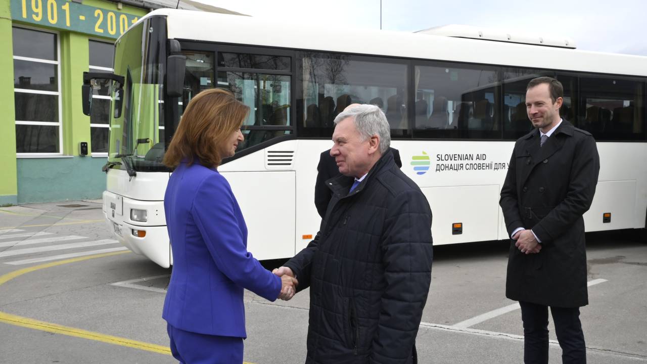 Ministrica za zunanje in evropske zadeve Tanja Fajon je ukrajinskemu veleposlaniku Andriju Taranu predala dva avtobusa za varno vrnitev ukrajinskih otrok v šolo.