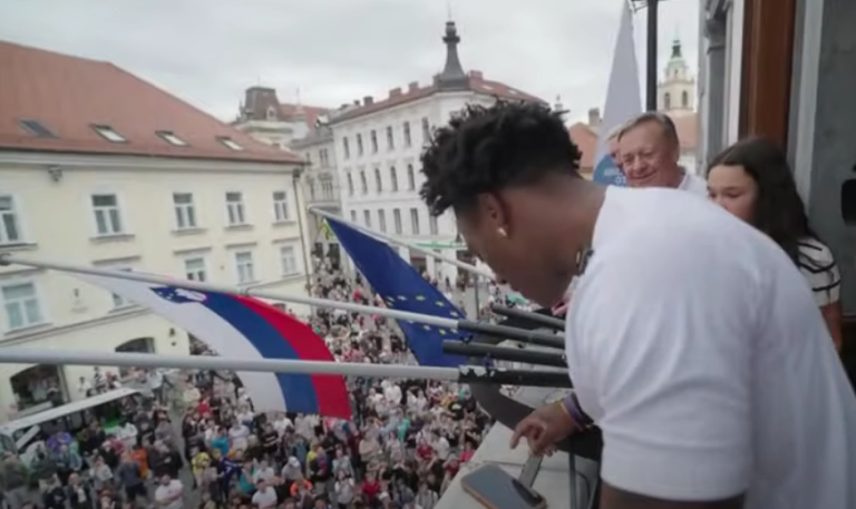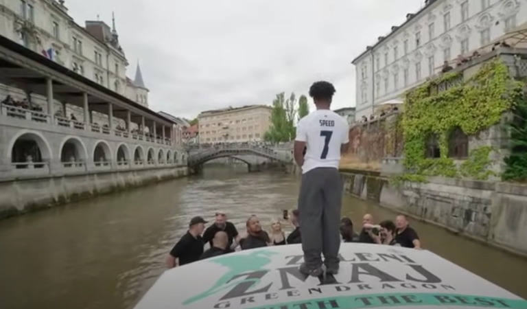 Med obiskom se je IShowSpeed preoblekel v dres slovenske nogometne reprezentance s številko 7 in si ogledal središče mesta.