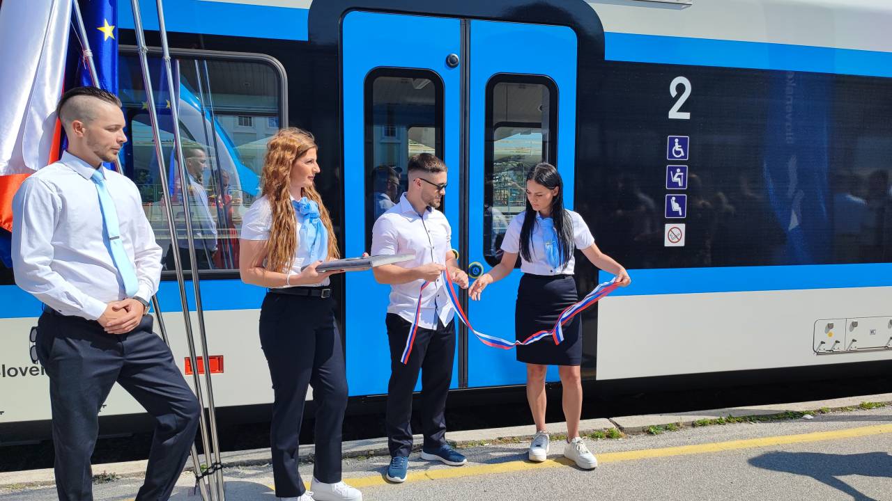 Na slavnostnem odprtju sta trak, ki je simbolno odprl vrata novega vlaka in naznanil prvo vožnjo, prerezala Miha Butara, direktor potniškega prometa Slovenskih železnic, in vodja sektorja za javni potniški promet na ministrstvu za okolje, podnebje in energijo Matjaž Vrčko.