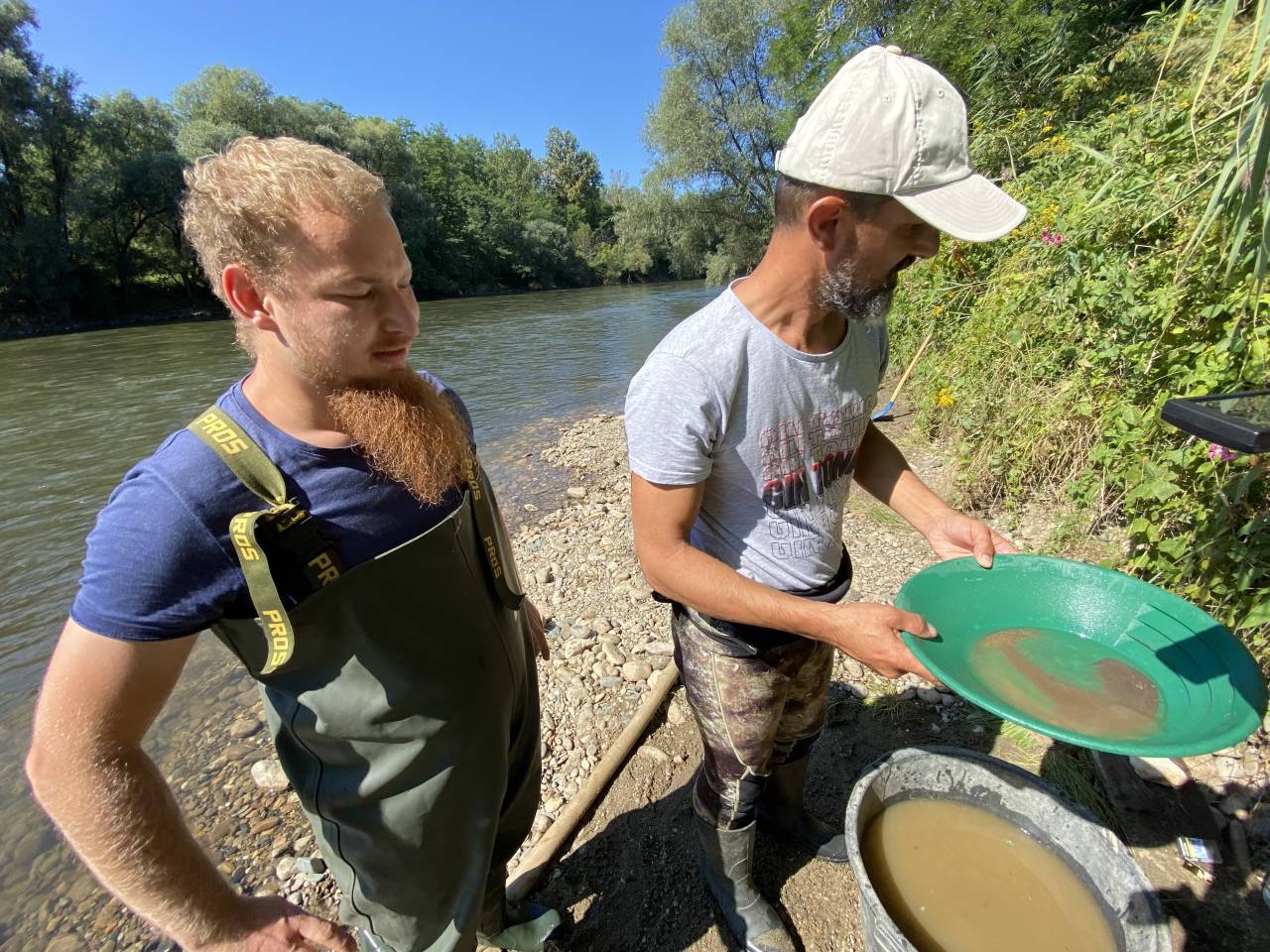 Danijel na vsaki lokaciji najprej preveri, ali je zlatonosna, to pomeni, da je treba najti pet do deset luskic. Če je lokacija prava, se delo lahko začne.