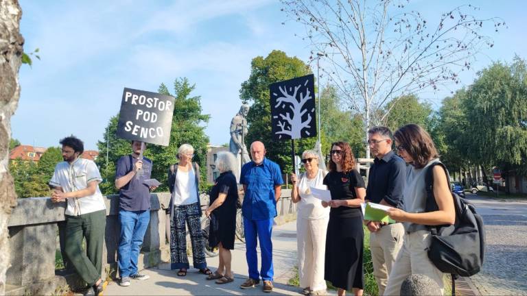 Lokacija ni bila izbrana naključno – potekala je na Plečnikovem mostu, na katerem je več posušenih dreves.