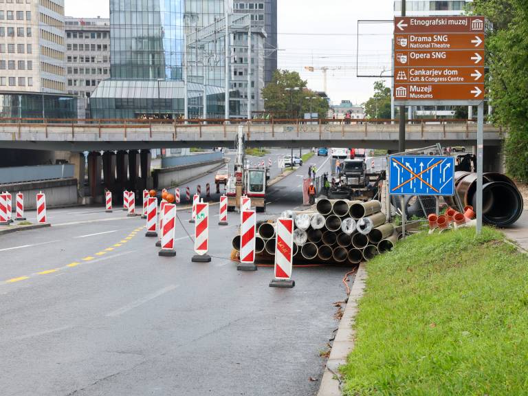 Na odseku med Vilharjevo cesto in Trgom OF delavci izvajajo zahtevna gradbena dela, stroji brnijo že zelo zgodaj zjutraj.