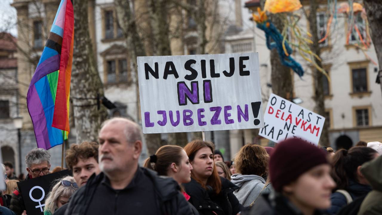 Na Kongresnem trgu v Ljubljani se danes odvija feministični protest ob 8. marcu, in sicer pod geslom Patriarhat ubija!