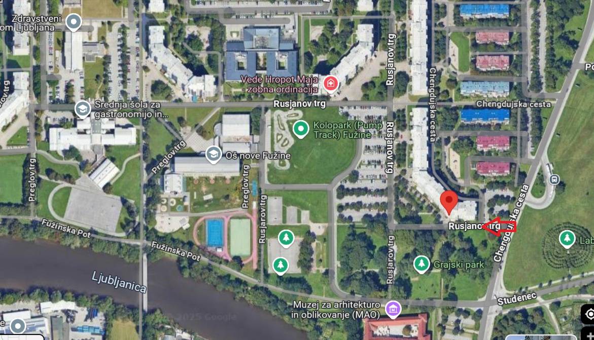 Iz njegovega zapisa je razbrati, da bi avtomatske potopne stebričke, ki se pogosto uporabljajo za umirjanje prometa v urbanih središčih in jih je mogoče spustiti le z dovolilnico, postavil v bližini bloka na naslovu Rusjanov trg 6, na robu naselja, kot je prikazano na posnetku.