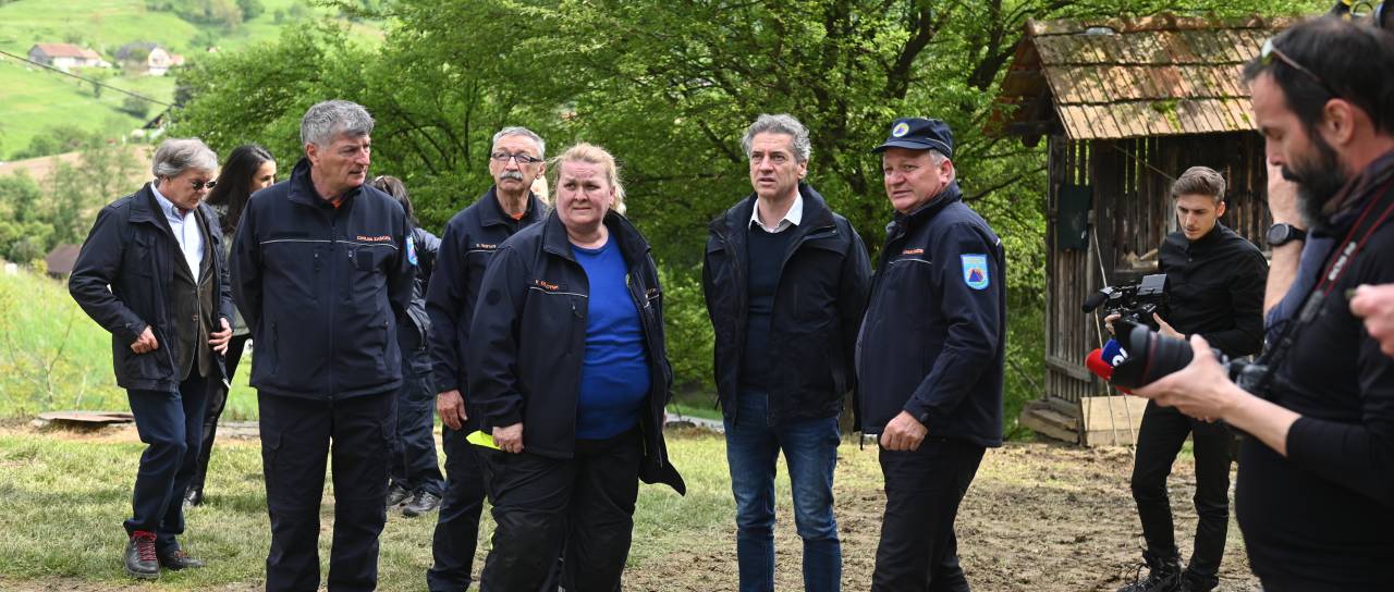 Obiskal je tudi domačine, ki so jim nedavne padavine uničile dom, med njimi zakonca Pitner, ki jima je plaz iz torka na sredo zasul hišo.