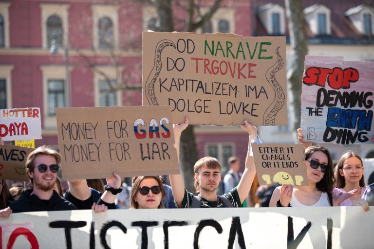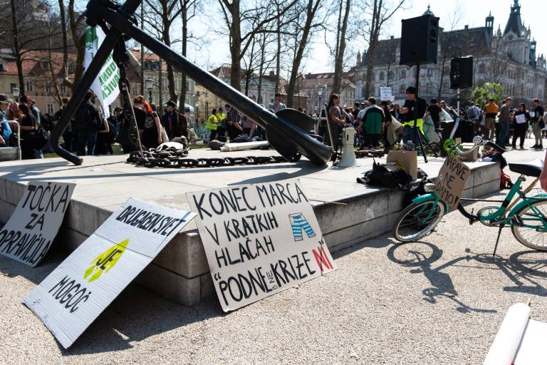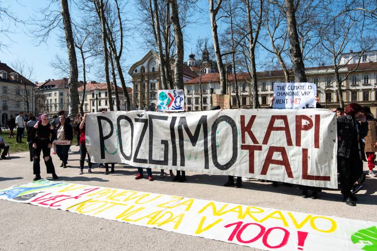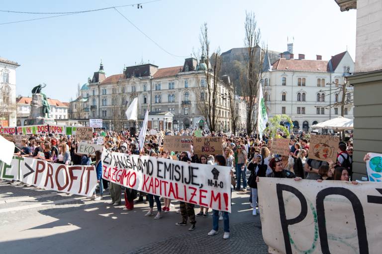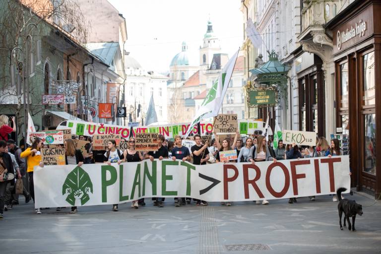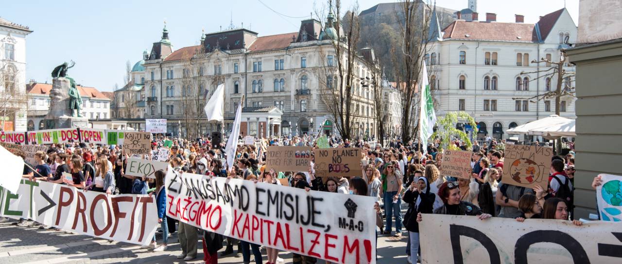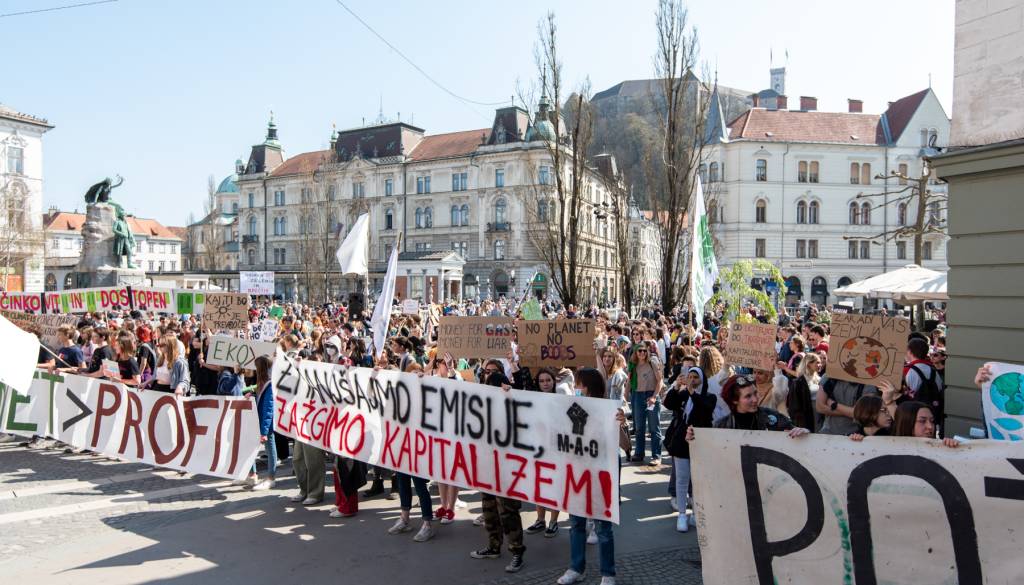 V Ljubljani, Mariboru in Kopru so se danes, ob 11.55, pod sloganom Planet pred profit začeli podnebni štrajki.
