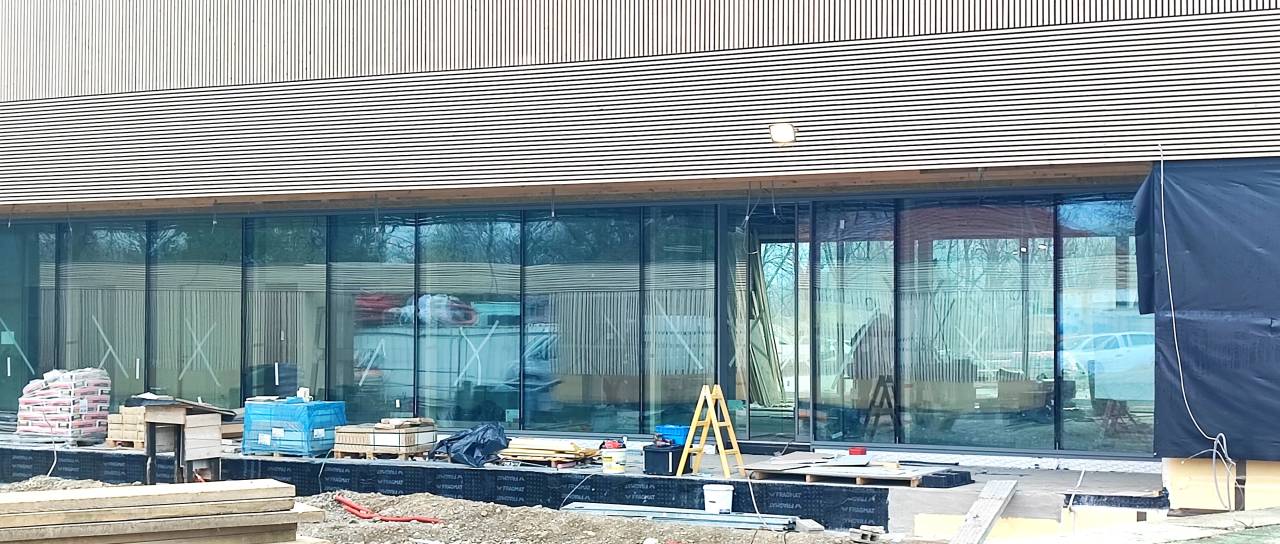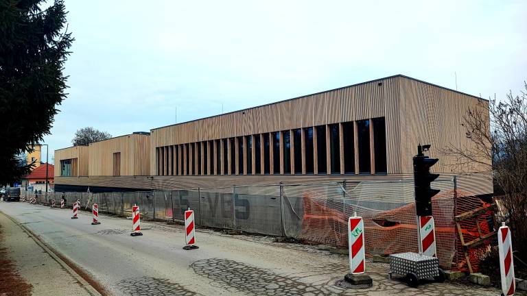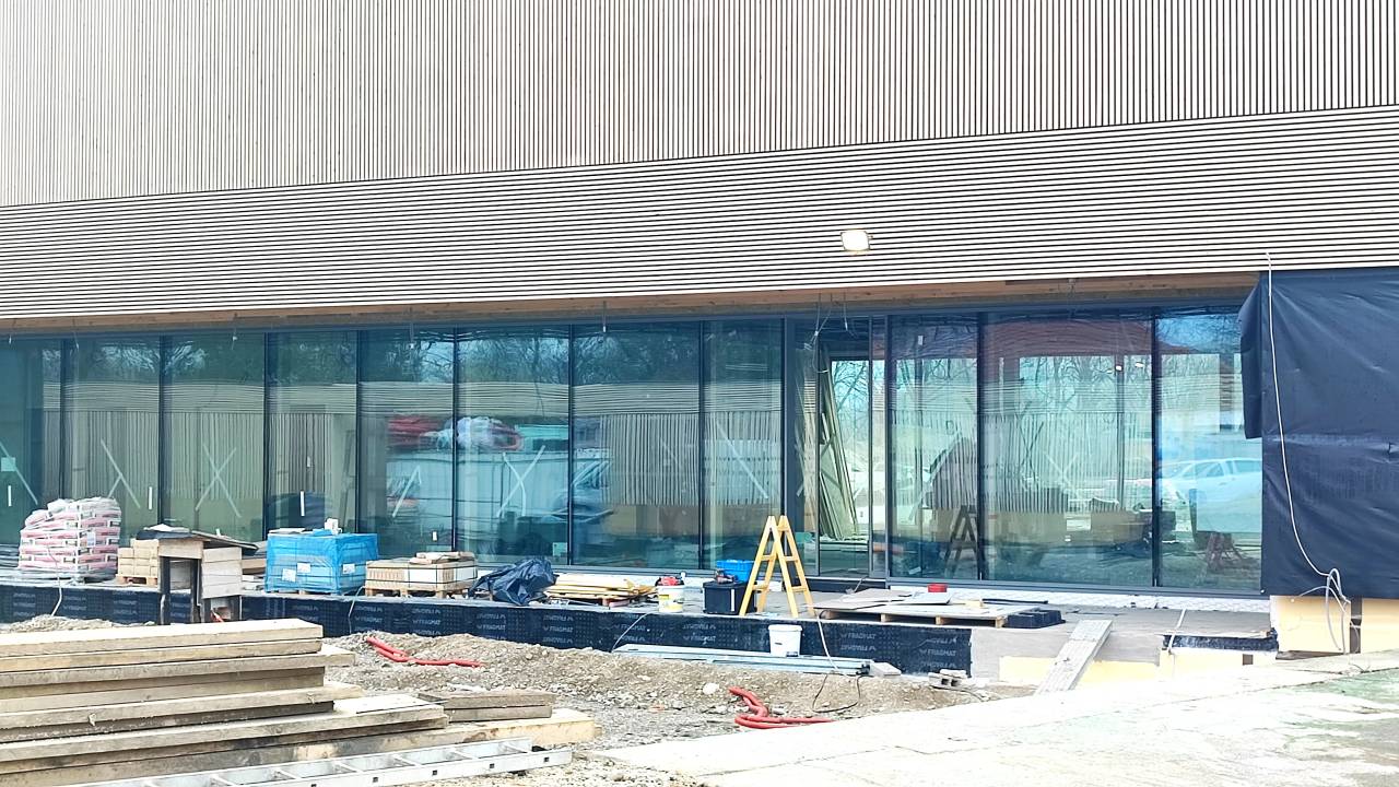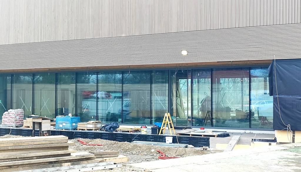 Gradbišče je polno aktivno; v notranjosti potekajo zaključna gradbena dela – predvsem instalacijske aktivnosti, čaka pa jih tudi dokončanje zunanjega bazena in urejanje okolice.