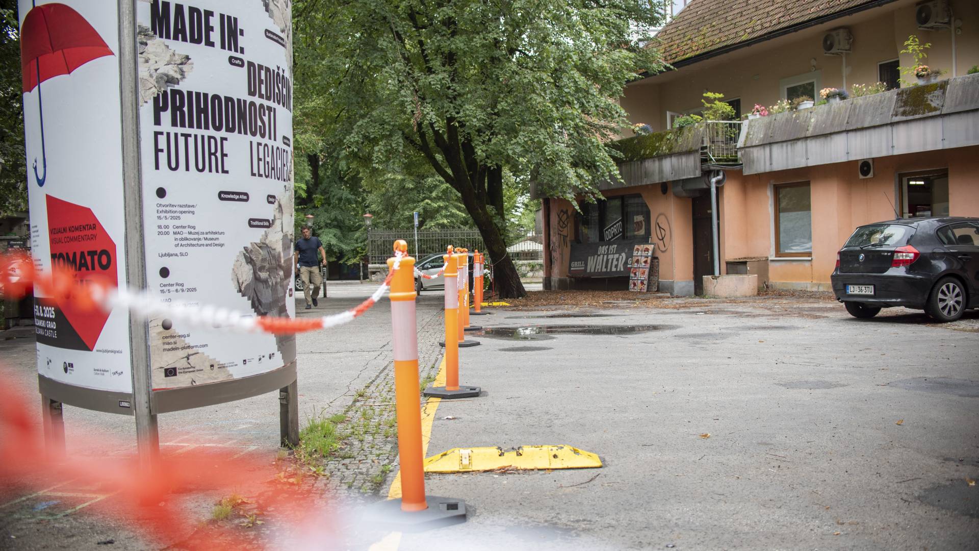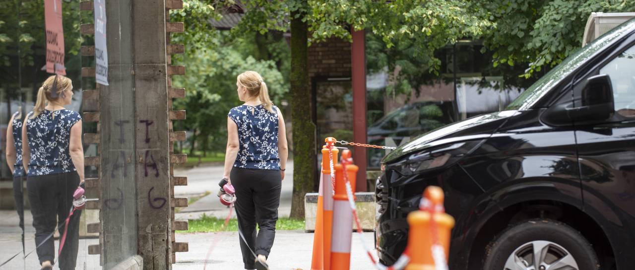Pešci in kolesarji so prisiljeni vijugati med parkirano pločevino. Vendar pa zadeva očitno ni hitro rešljiva.