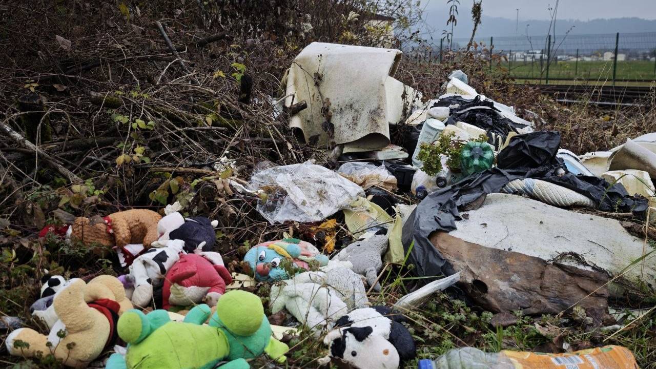 Plastične vreče, škatle, raztrgana oblačila, otroške igrače, celo stara obutev in gume ter nekaj gradbenega materiala. Količina odpadkov kaže, da to ni enkratni eksces, temveč utečena praksa.