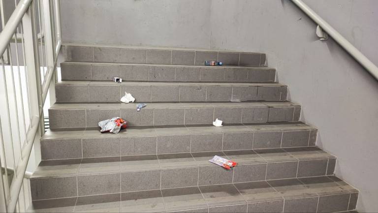 »Ko smo iz garaže stopali po stopnišču, nas je pričakala prava sramota. Stopnice so bile 'posejane' z embalažo hrane, pločevinkami in ostanki pijač - z odpadki. Janković in športniki se radi hvalijo z dvorano, ampak urejenosti se očitno nihče ne posveča. Sramotno,« je zapisal in priložil posnetek ter fotografije neurejenosti.