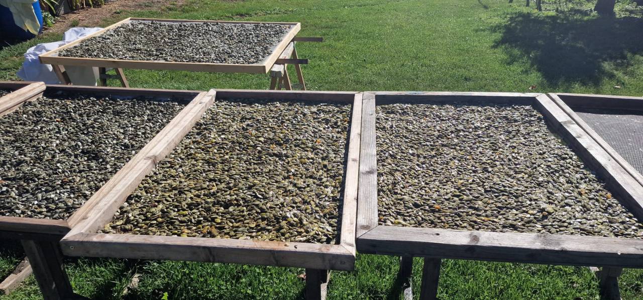 Darinkin mož Karel Cör je dolga leta vozil avtobus, danes pa se posveča bučam. Za obdelavo je izdelal svojo napravo.