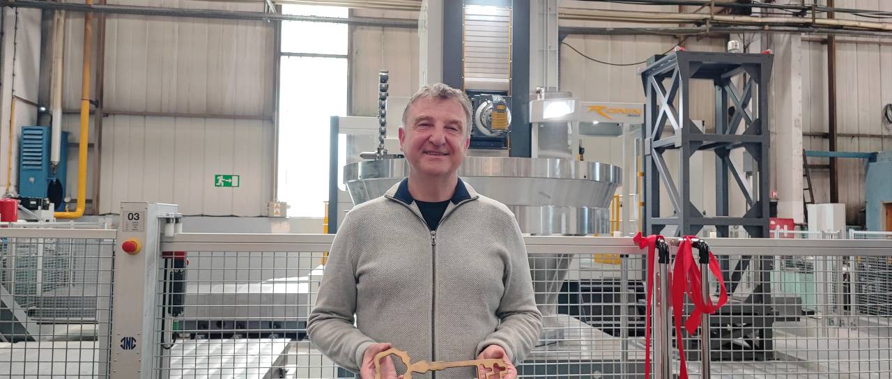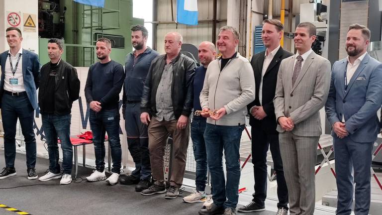 Ob tem so pripravili tudi simbolno gesto: stroja so uradno predali v delovanje z zlatim ključem, ki so ga izdelali kar sami. Direktor družbe Jure Andročec ga je predal ekipi, ki bo nove naprave vsakodnevno vodila. Sprejel ga je Milan Iberčič, vodja obdelave.