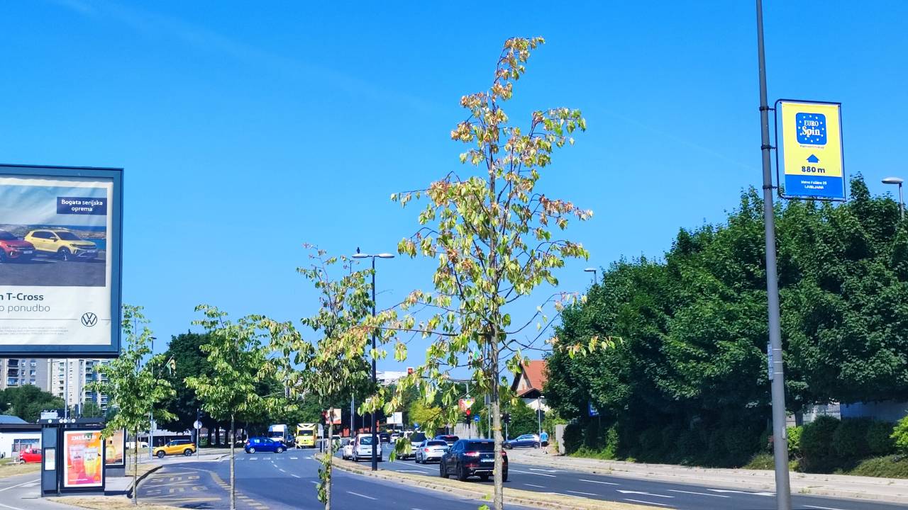 Bistveno slabše pa je njihovo stanje na Zaloški cesti na območju Fužin, v bližini trgovin Hofer in Spar, kjer je več dreves porumenelih, nekatere veje so že povsem suhe.