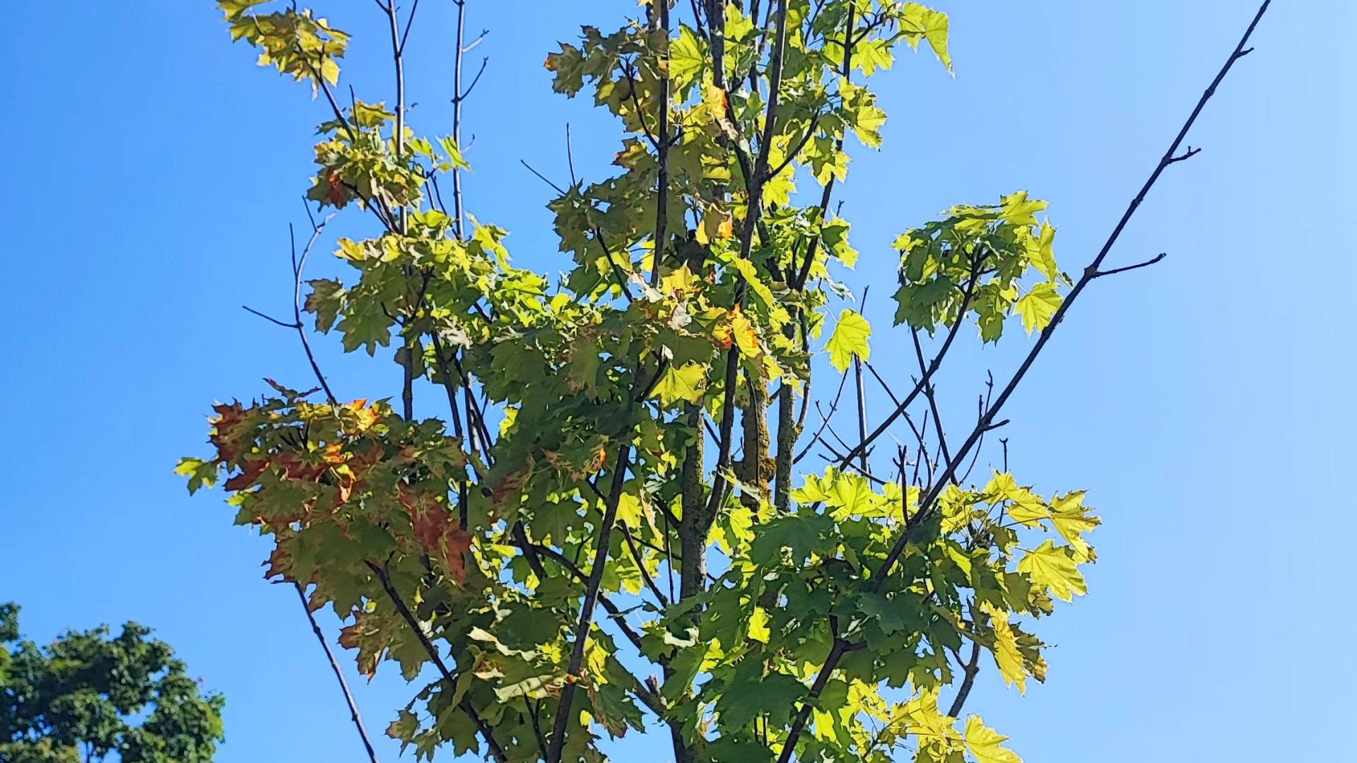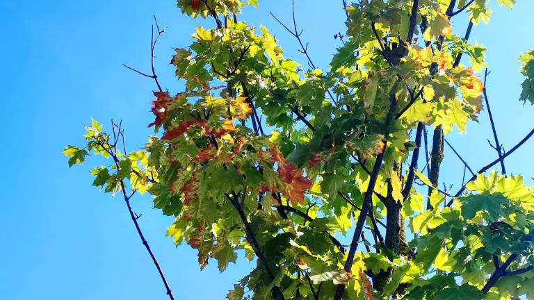 Na Letališki cesti je nekaj dreves delno porumenelo, večinoma pa so lepo zelena, na prvi pogled zdrava.