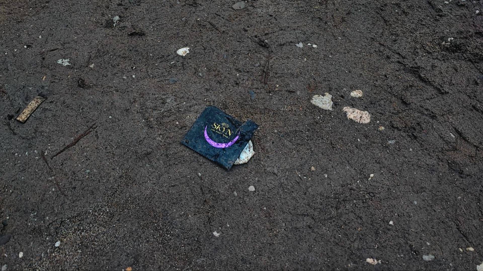 Na sami plaži in v njeni neposredni bližini pa so prizori še manj prijetni. Najbolj problematična je makadamska niša, ki služi kot parkirišče in je le nekaj korakov od vode. Ta je močno posmetena. Tudi tu prevladujejo ostanki embalaže in hrane, opazili pa smo tudi tisto, kar je na Redditu opisal domačin: odvržena oblačila, uporabljene kondome in njihovo embalažo, embalažo različnih spodbujevalnih pripravkov za spolno slo, številne papirčke ter celo iztrebke.