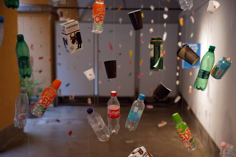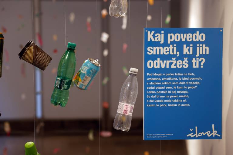 Na razstavi lahko vidimo kolesa, ki so jih potegnili iz Ljubljanice, žvečilne gumije, ki so se znašli na tleh, razne smeti kot so plastenke, ki so odvržene na tla, elektronske naprave, ki niso bile ustrezno zavržene.