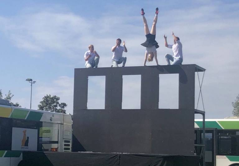 Na današnji otvoritvi novih prostorov na Gmajnicah so zbrane presenetili štirje člani priljubljene akrobatske skupine Dunking Devils.