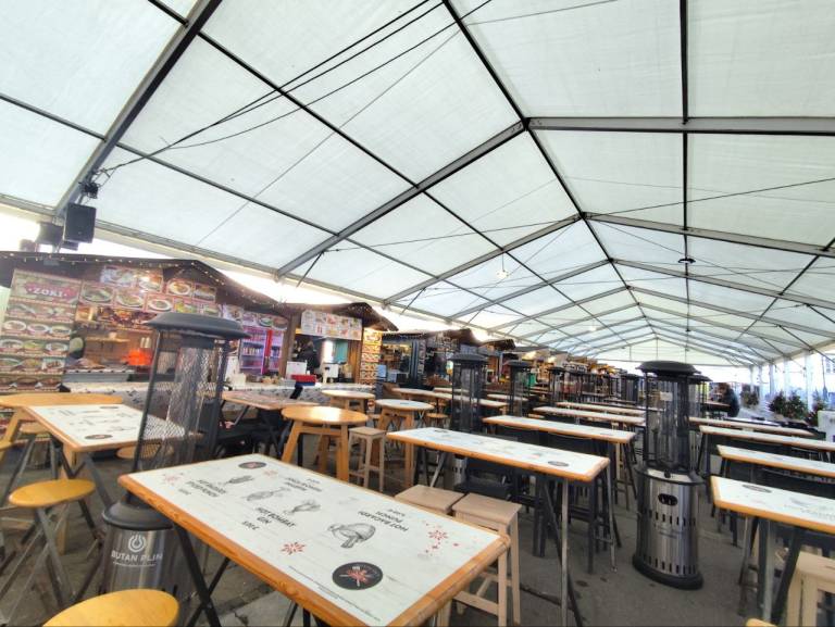 Stojnice so postavljene na mestih kot vsako leto, tudi ponudba hrane in pijače je standardna: poleg čevapčičev in klobas ponujajo tudi slovenske jedi, kot so štruklji, povsod pa ponujajo kuhano vino in druge alkoholne pijače.
