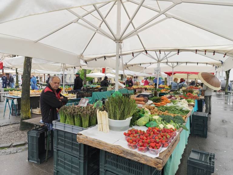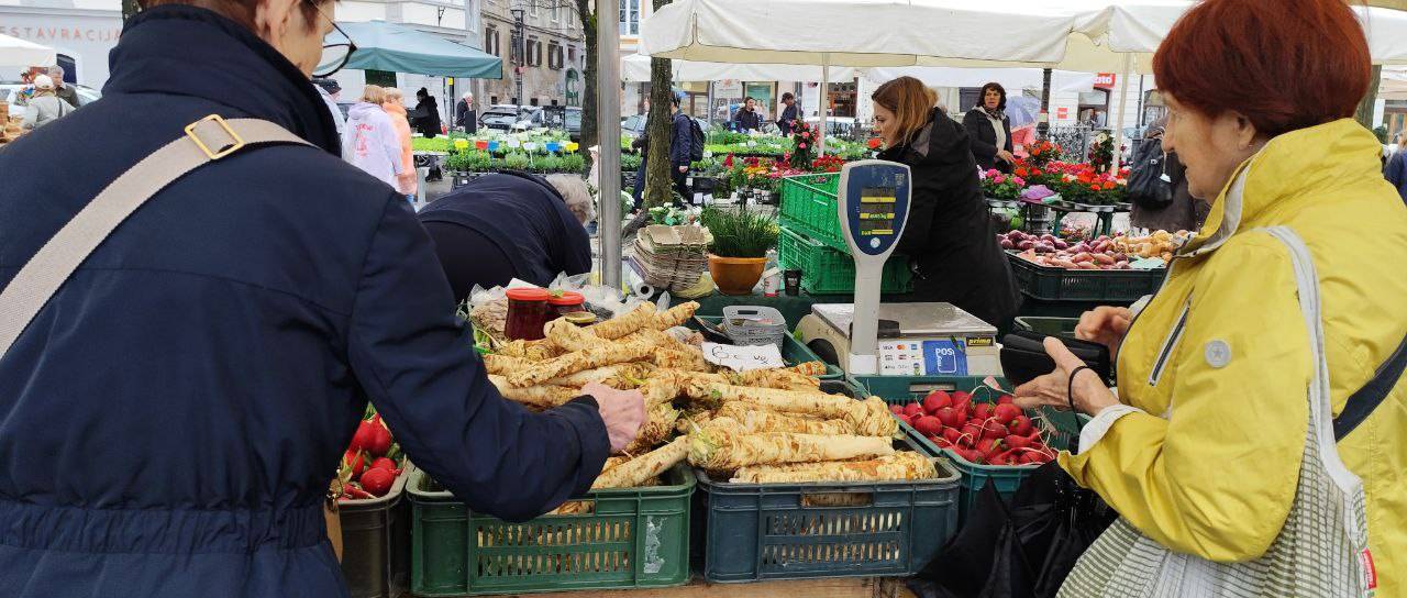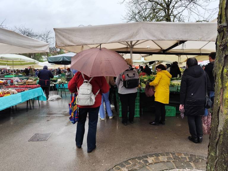 »Danes pečem potico in šunko v testu, zato sem obiskala tržnico. Kupujem vedno pri istih branjevcih in branjevkah, orehe v pokriti v tržnici, šunko pa pri mesarju pod arkadami,« nam je povedala starejša gospa medtem, ko je hitela po opravkih.