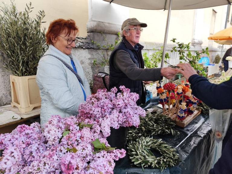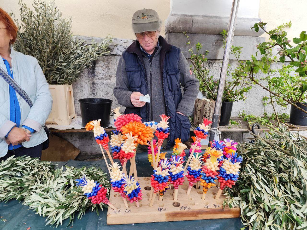 Poleg prodajalcev cvetja pa najdemo tudi prodajalce, ki ponujajo butare in oljčne vejice, pomladne narcise, španski bezeg in spominčice.