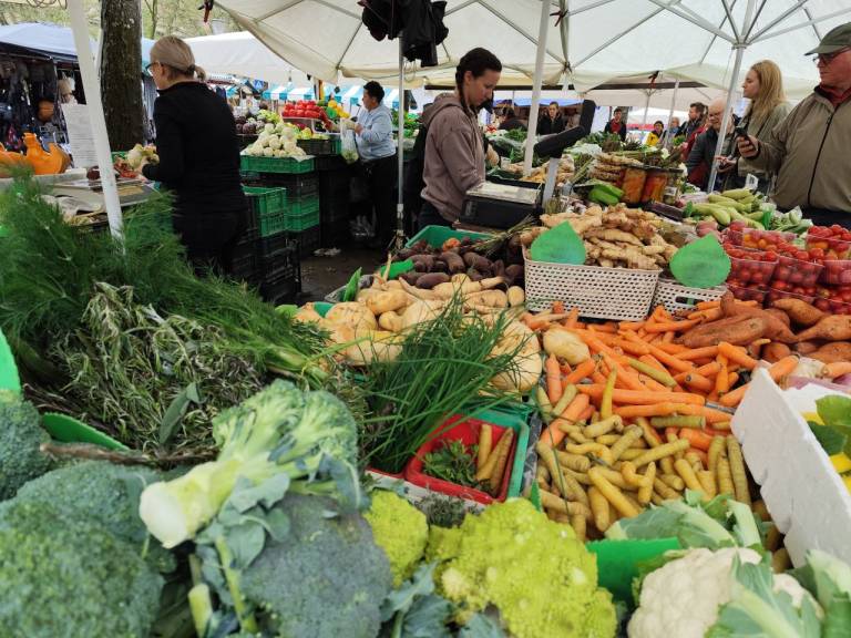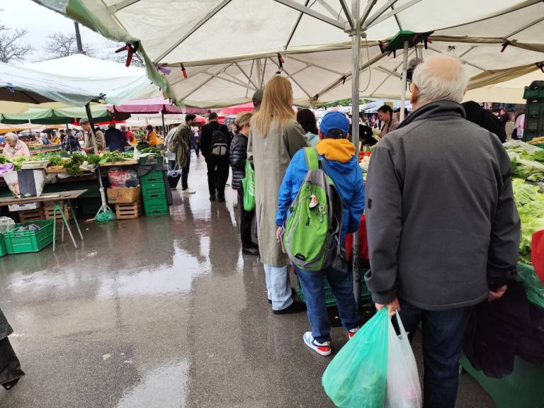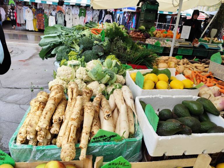 Na delu z zelenjavo in sadjem je bilo pri določenih stojnicah precejšnja gneča.
