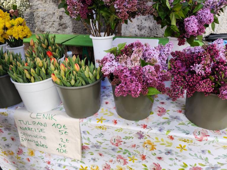 Na dveh stojnicah so ga že razprodali, na tretji stojnici smo zadnjega kupili za 12 evrov, bil pa je res debel šopek.