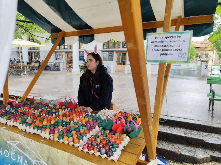 Ponudite toliko denarja, kot ga lahko in vzamete jajca, zbrani denar pa gre v dobrodelne namene, nam je pojasnila prijazna gospodična z zajčjimi ušesi.