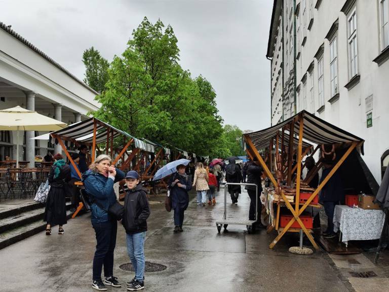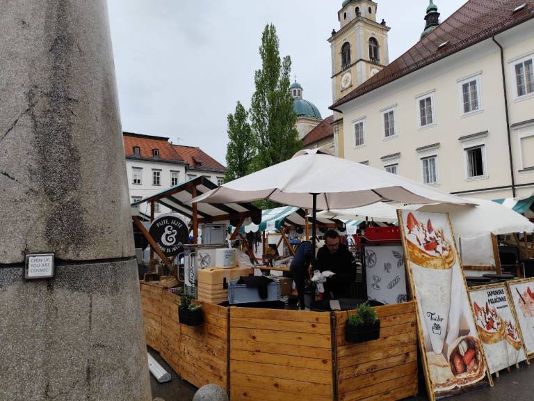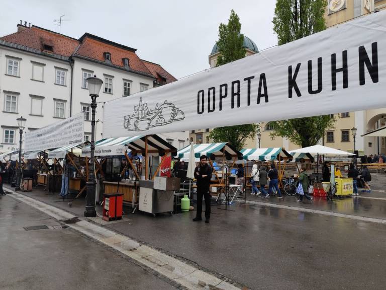 Na Pogačarjev trgu so se gostinci pripravljali na naval lačnih v Odprto kuhinjo.