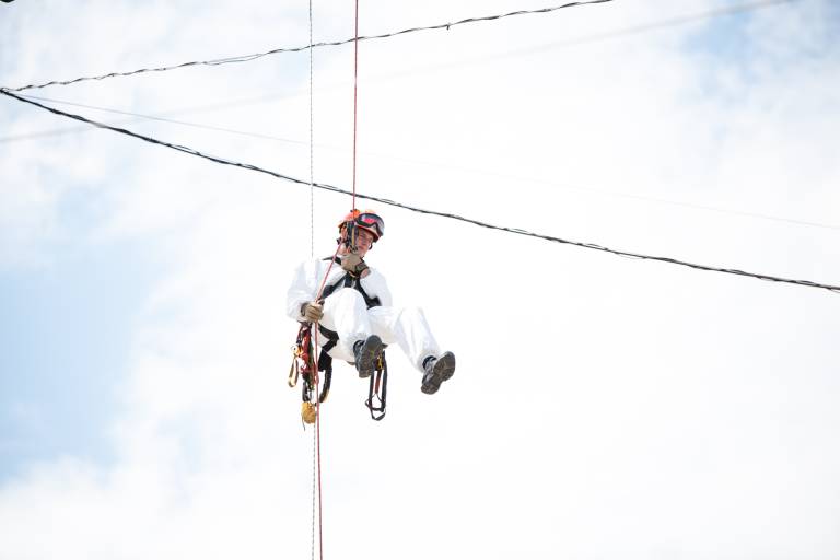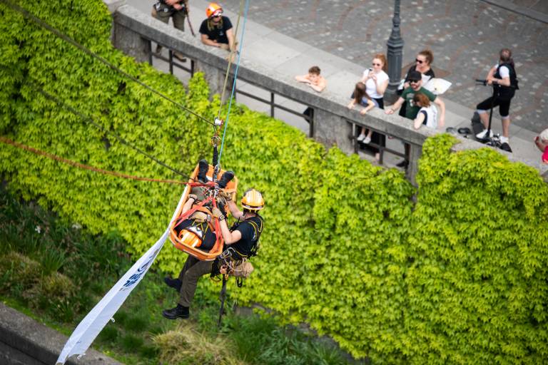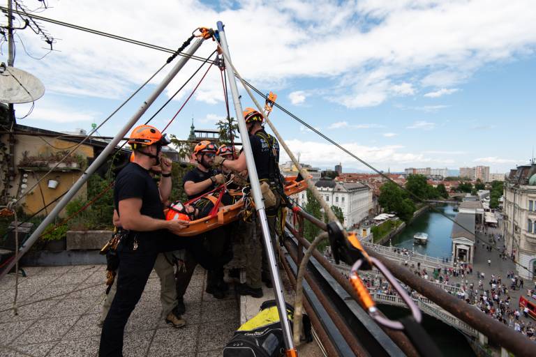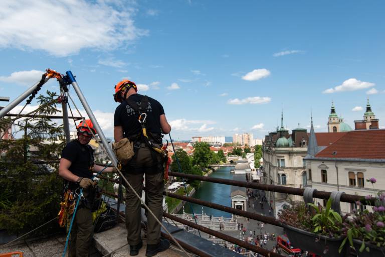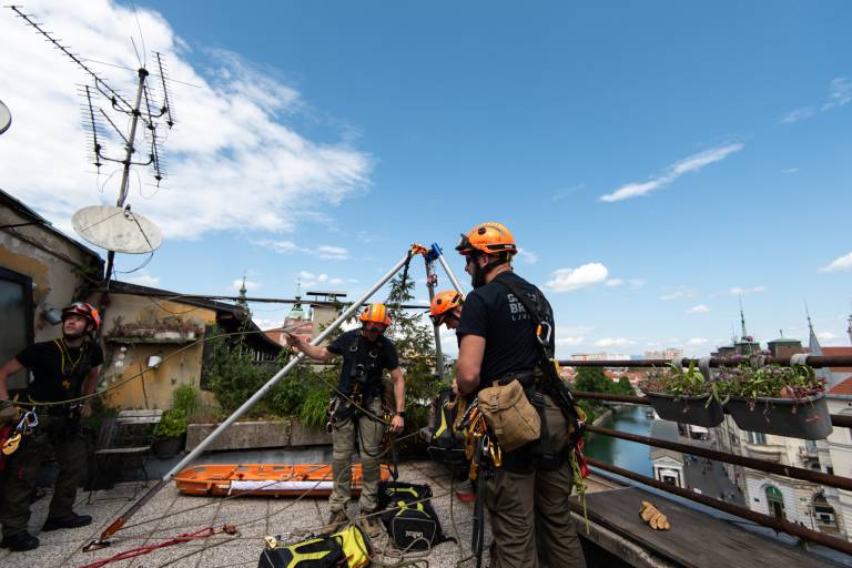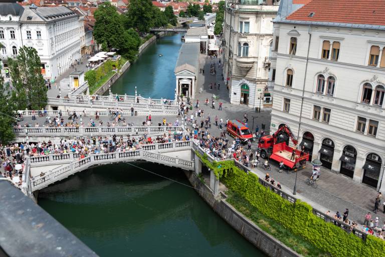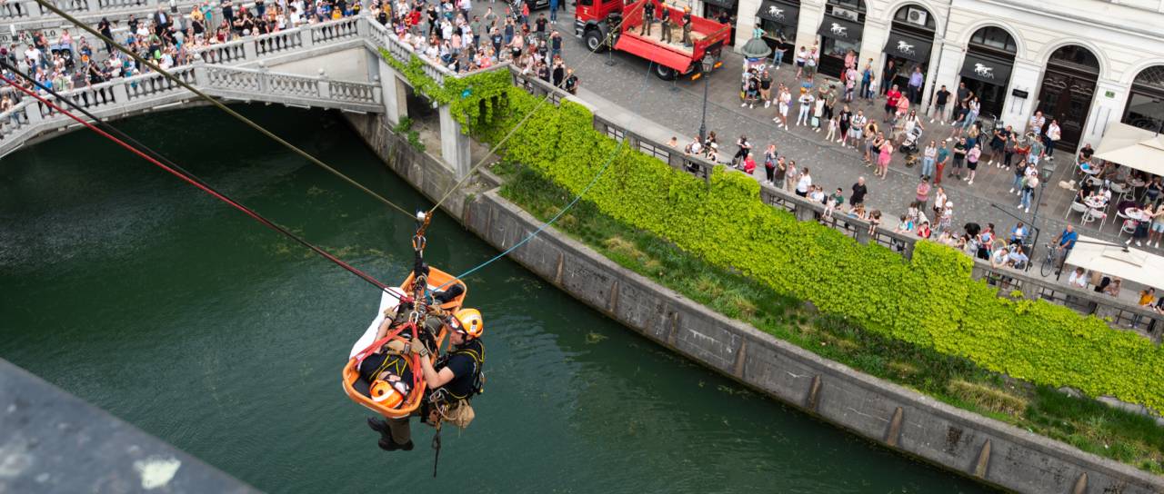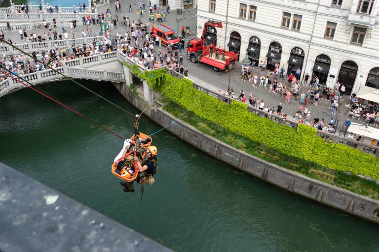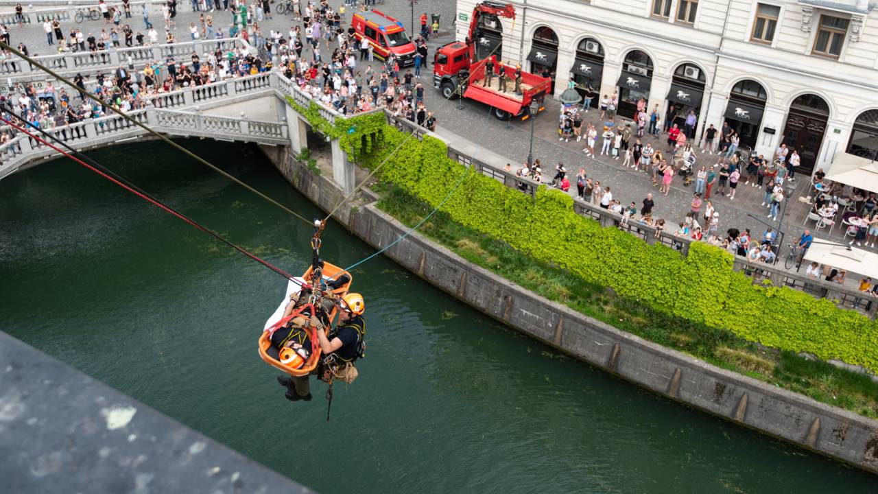 Gasilci so popoldne čez Ljubljanico napeli vrv, s tem pa pritegnili kar nekaj radovednih opazovalcev.