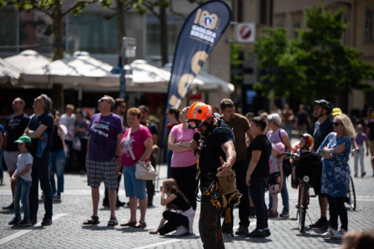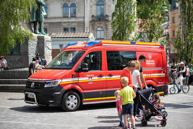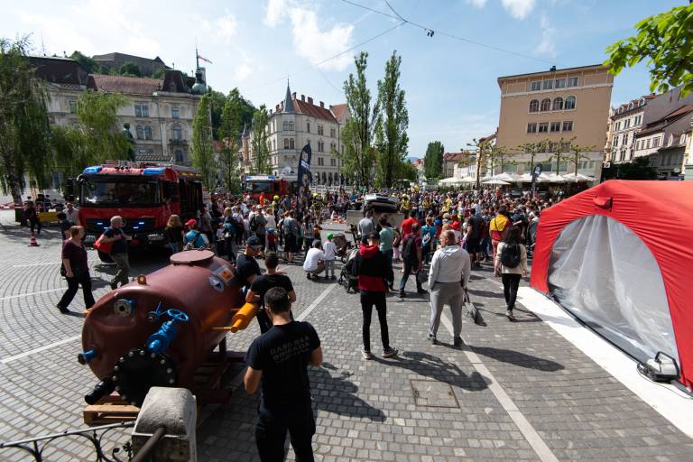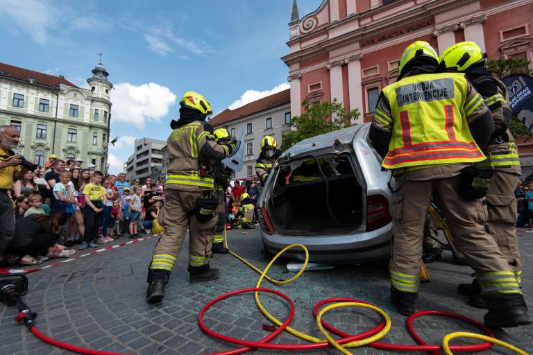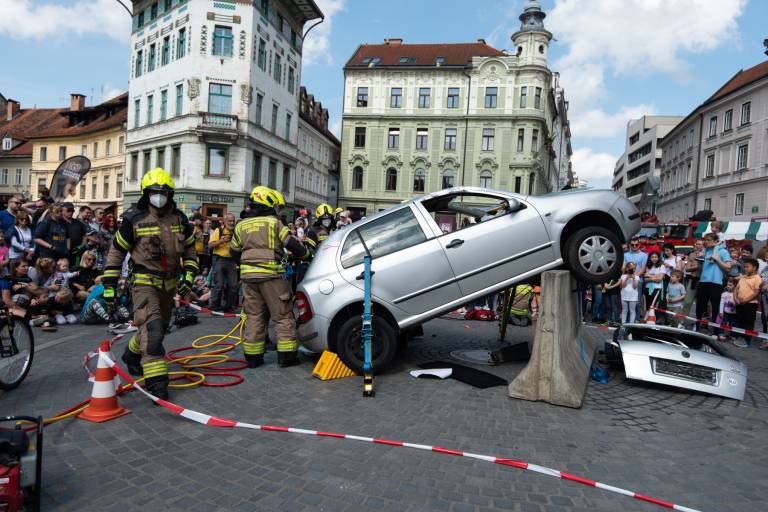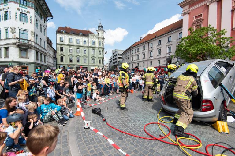 Danes v središču mesta na različnih lokacijah poteka dogodek Gasilske brigade Ljubljana, na katerem prikazujejo različne gasilske veščine.