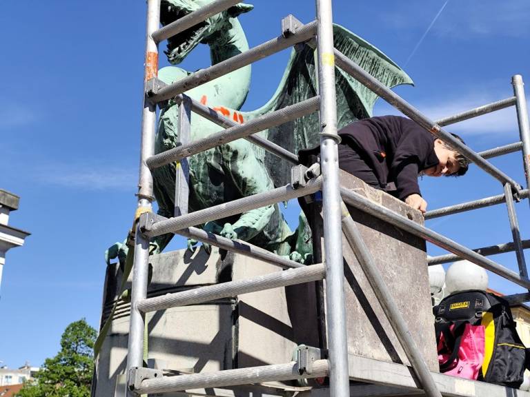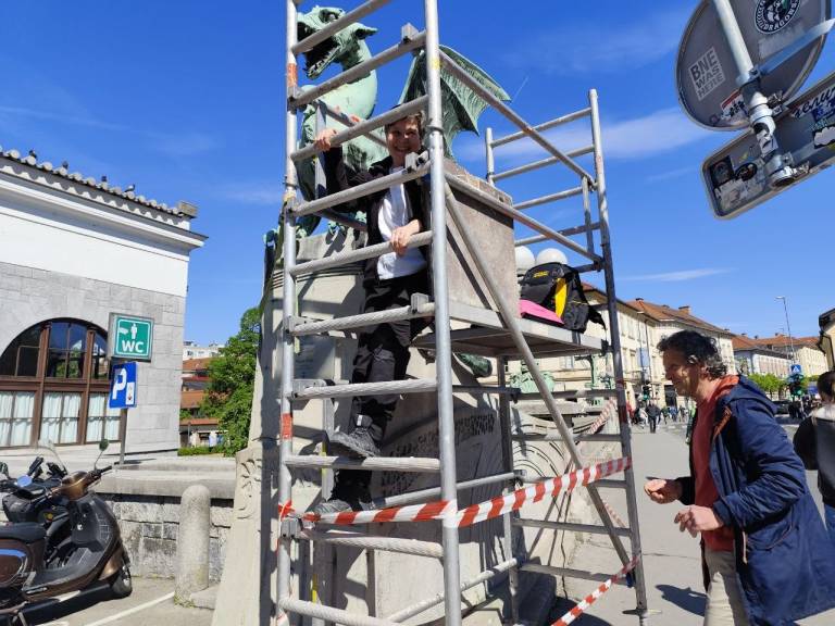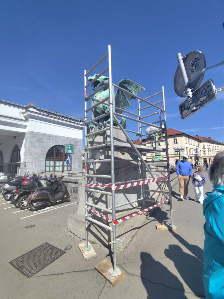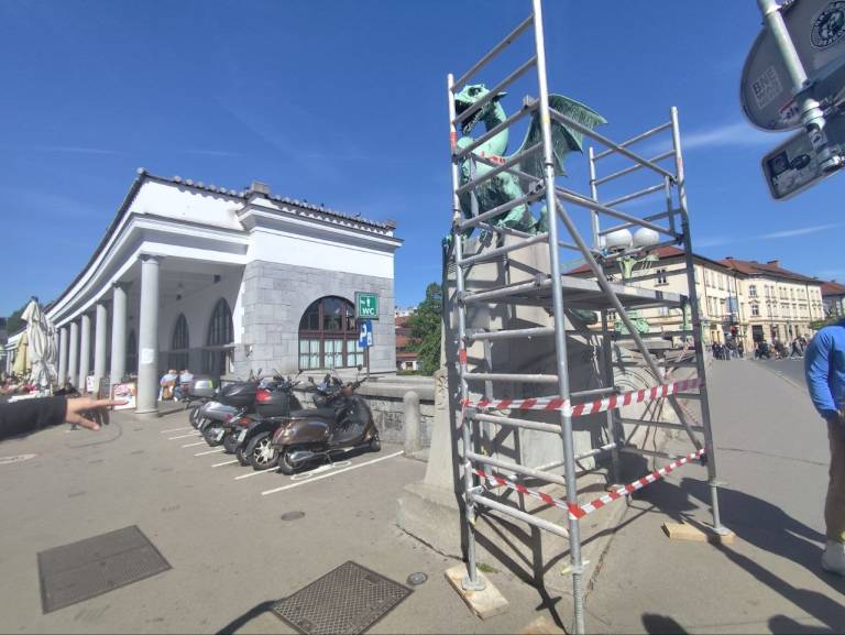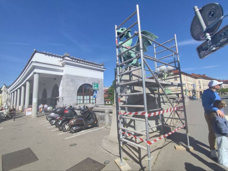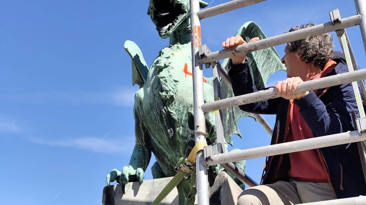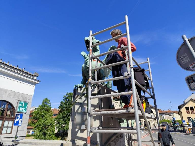 Kot sta nam povedala restavratorja, so poškodbe na zmaju na občini opazili že v začetku tedna, vendar zaradi vremenskih razmer ni bilo mogoče takoj ukrepati.