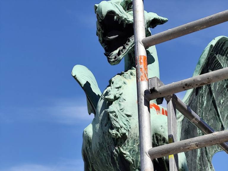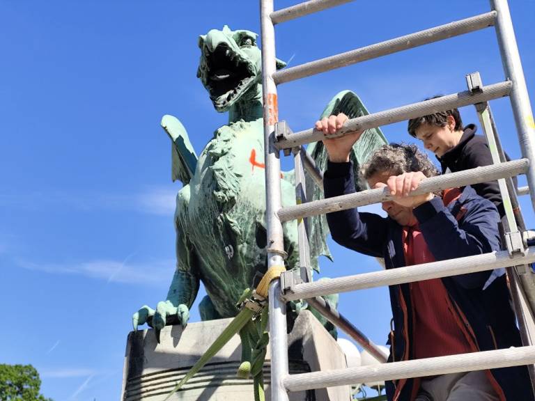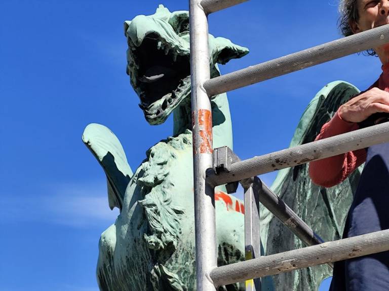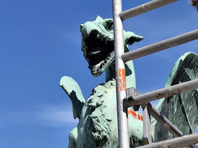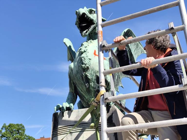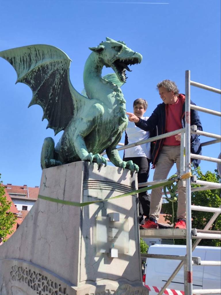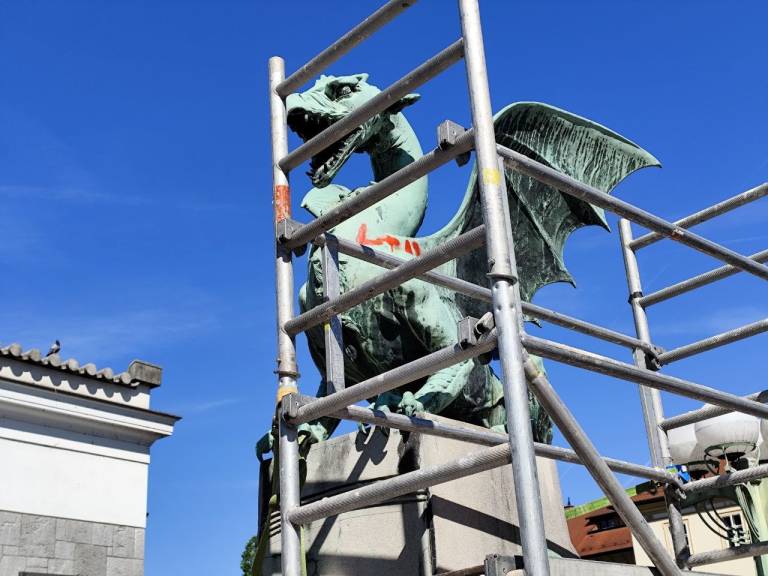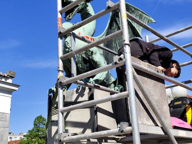 Kot sta nam povedala restavratorja, so poškodbe na zmaju na občini opazili že v začetku tedna, vendar zaradi vremenskih razmer ni bilo mogoče takoj ukrepati.