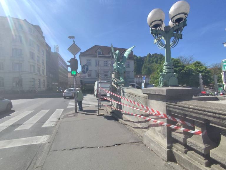 Na Zmajskem mostu je prišlo do vandalizma, pri katerem je bil poškodovan eden od štirih zmajev, ki krasijo most.