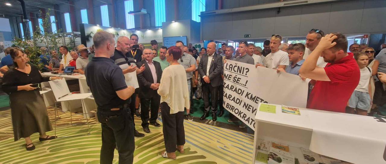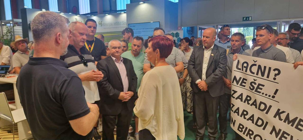 Na sejmu AGRA v Gornji Radgoni je danes skupina prašičerejcev in predstavnikov nevladnih organizacij vdrla na razstavni prostor ministrstva za kmetijstvo, gozdarstvo in prehrano ter onemogočila delo zaposlenih, so sporočili z ministrstva