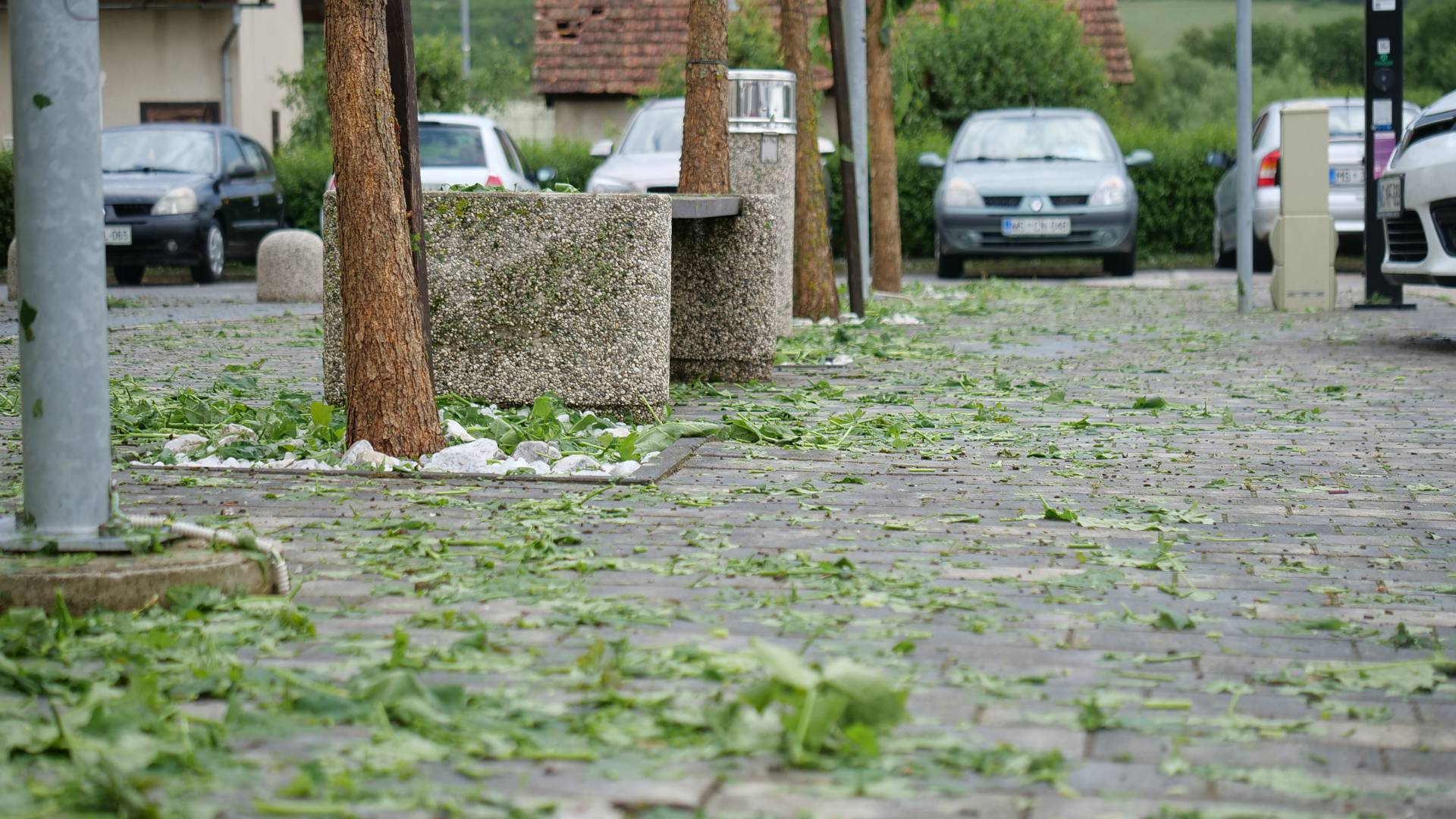 Pri osnovni šoli so po besedah župana vsi avtomobili ostali brez oken, strehe na hišah pa so uničene.