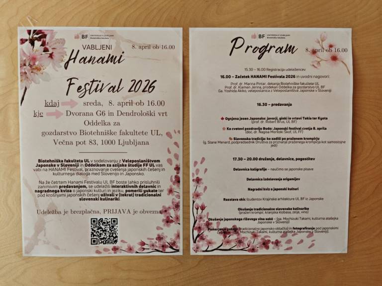 Na Biotehniški fakulteti v Ljubljani je potekal Hanami festival, ki je pod cvetočimi sakurami združil znanost, umetnost in japonsko kulturo.