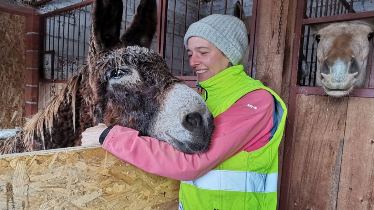 Doma ima več živali, ki čakajo na njo. Konja, kokoši in mačka. Za živali skrbita mama in njen prijatelj. Pove, da je imela tudi koze in ovce, a jih ni več. Ko je še bila doma jih je varovala oslica Nanette, nedavno je do drobnice prišel volk.