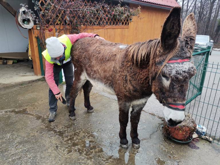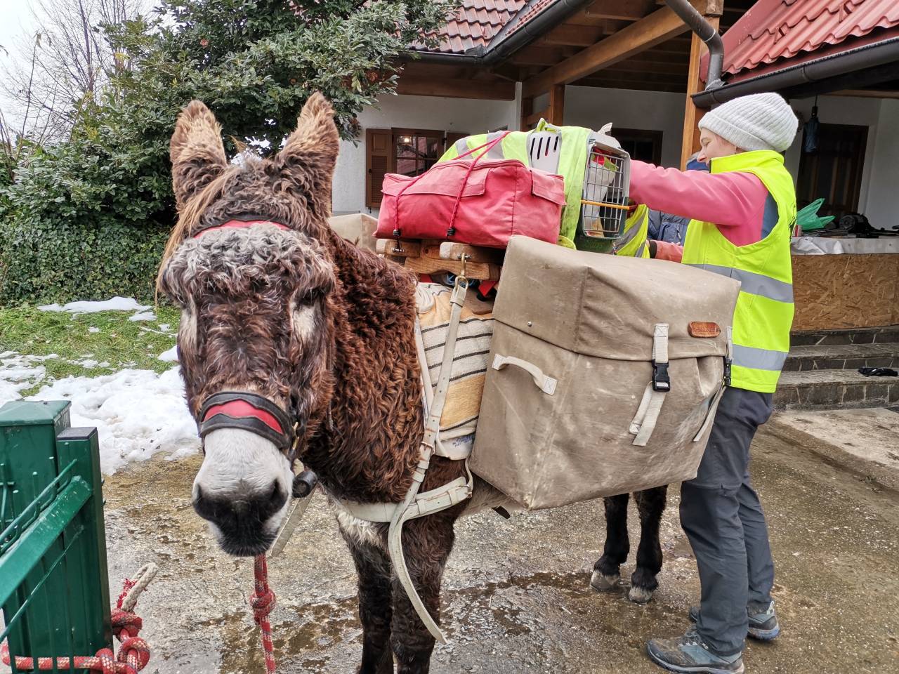 Že trinajst mesecev potuje po svetu. »Kam pa naprej,« jo vprašamo. »Madžarska,« je edini odgovor, ki ga lahko poda. Pot si zarisuje sproti, po predlogih ljudi, velikokrat pa tudi glede na prenočišče. Spi, kjer ji dovolijo. Včasih trka na vrata in upa, da bodo odprli ljudje, ki imajo za ponuditi le prazen kotiček hleva, kjer lahko priveže oslico.