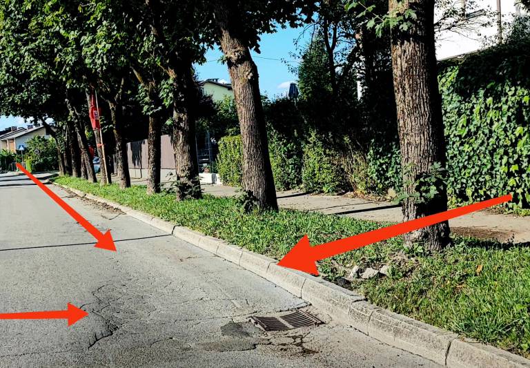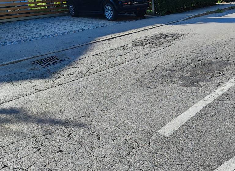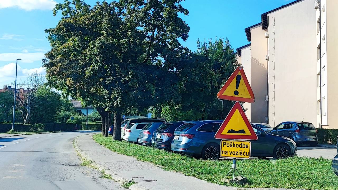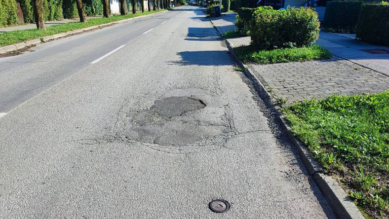 Edino, kar je občina do zdaj storila, je to, da je postavila prometni znak, ki opozarja na poškodovano vozišče.