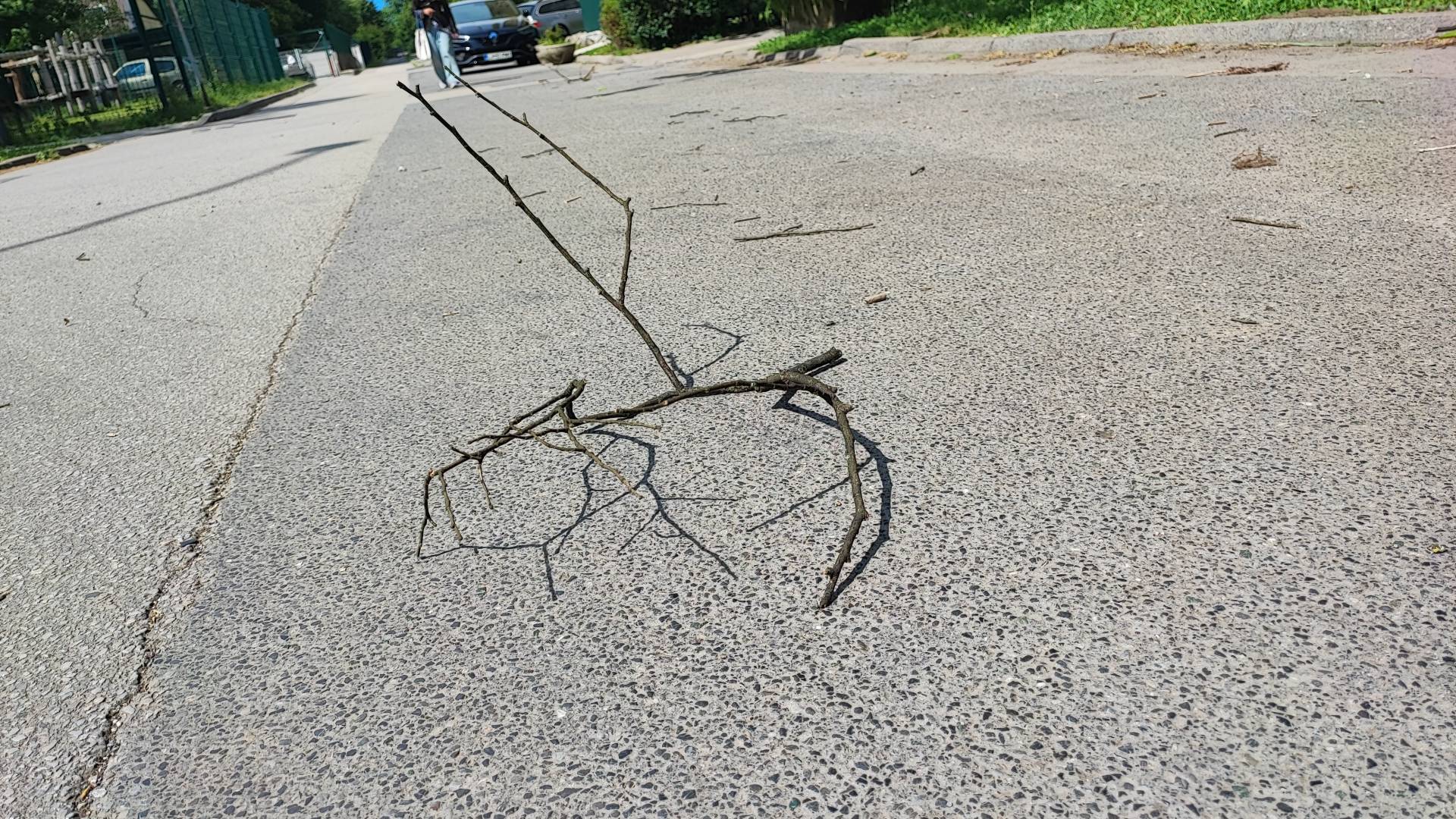 Nekaj večjih, ki jih je po pripovedovanju mimoidočega zlomil eden zadnji naliv z vetrom, pa so že umaknili na bližnjo zelenico. Nevarnost je torej realna.