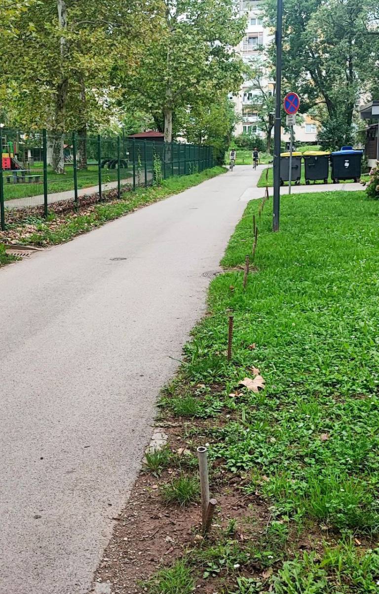 »Obveščam vas, da so na ulici Hermana Potočnika (Pot spomina) postavljeni nizki stebrički iz gradbenega jekla za omejitev parkiranja, ki so slabo vidni in lahko povzročijo hude poškodbe ali smrt pri slučajnem padcu med hojo ali med igro otrok. Predlagam čimprejšnjo odstranitev ali zamenjavo s primernimi, fleksibilnimi rešitvami.«
