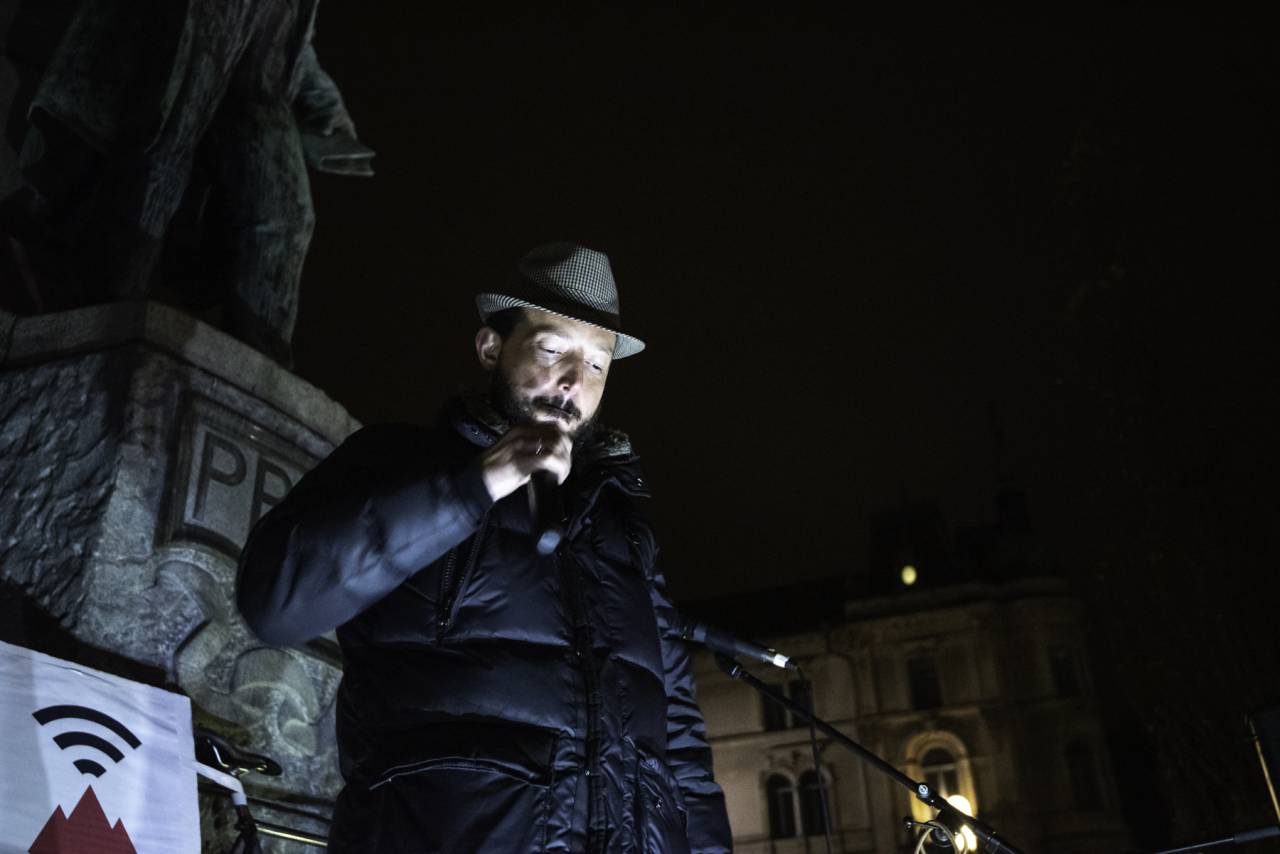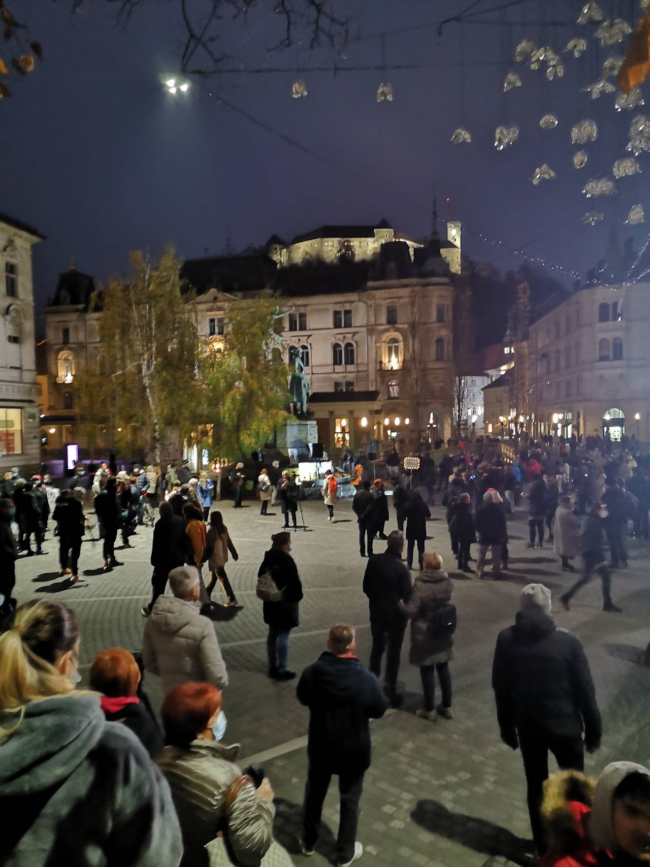 Zbralo se je več kot sto protestnikov, množici je zapel tudi Jani Kovačič.