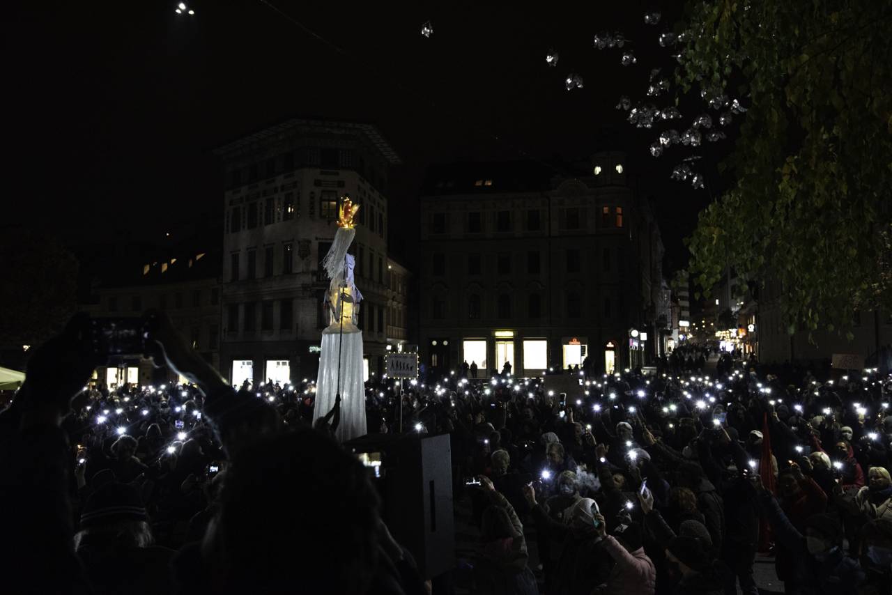 Veliko udeležencev ima zaščitno masko, prav tako upoštevajo varnostno razdaljo. Protesta se je udeležila tudi pisateljica Svetlana Makarovič, ki je nagovorila protestnike.